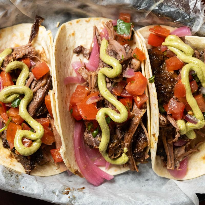 Choice of brisket, chicken, or pork with pickled onions, house pico de gallo, and house-made avocado crema.
