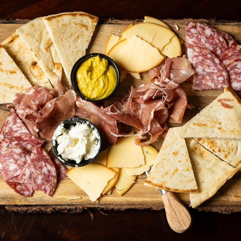 Choice of meats and cheeses served with Castelvetrano olives, toasted pita wedges, and spicy mustard. Ask your server for current selections.